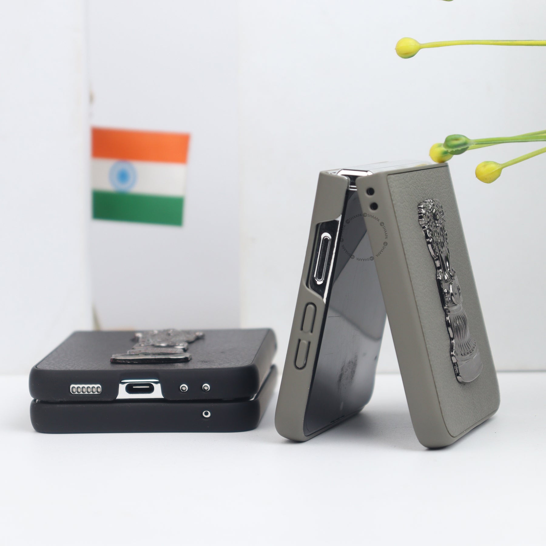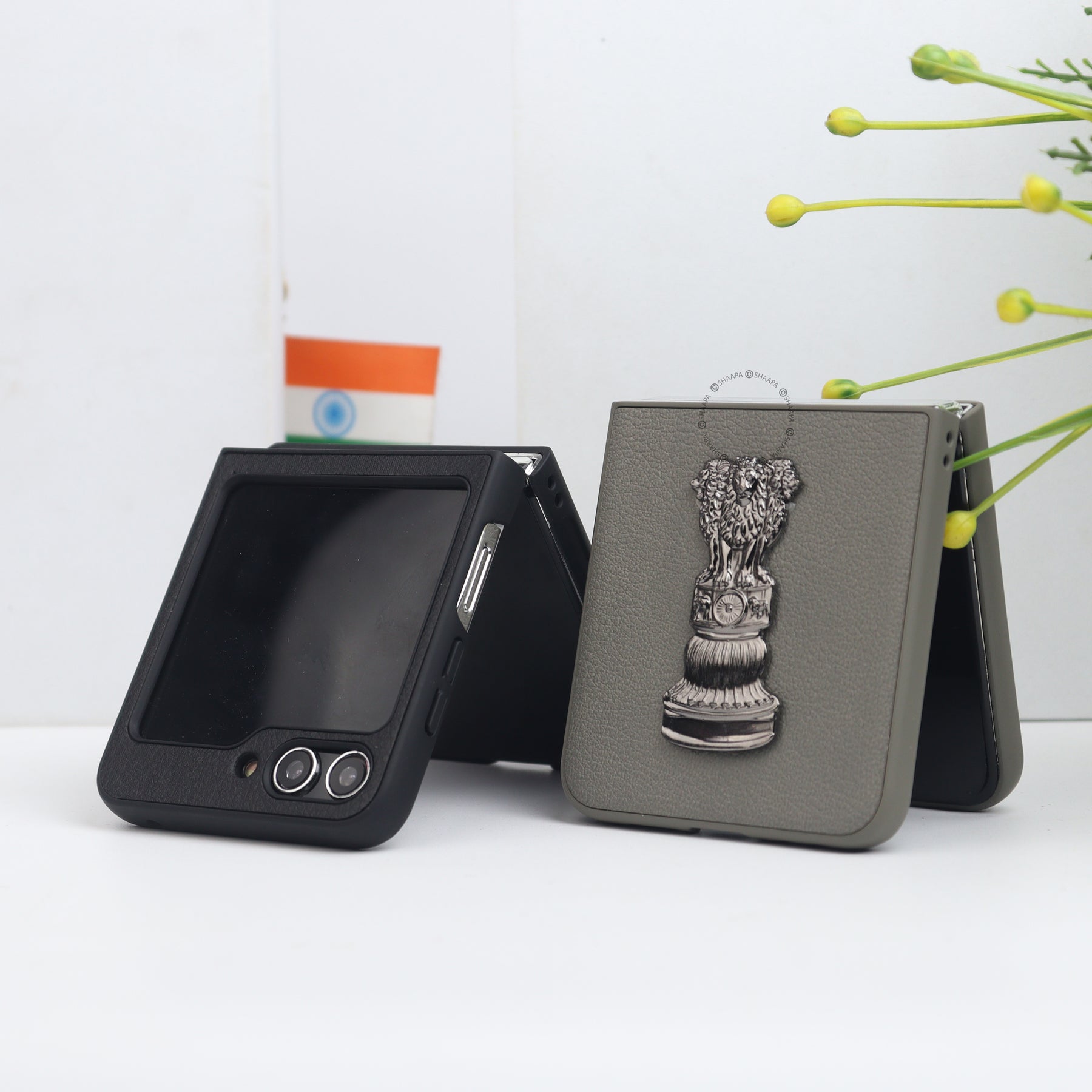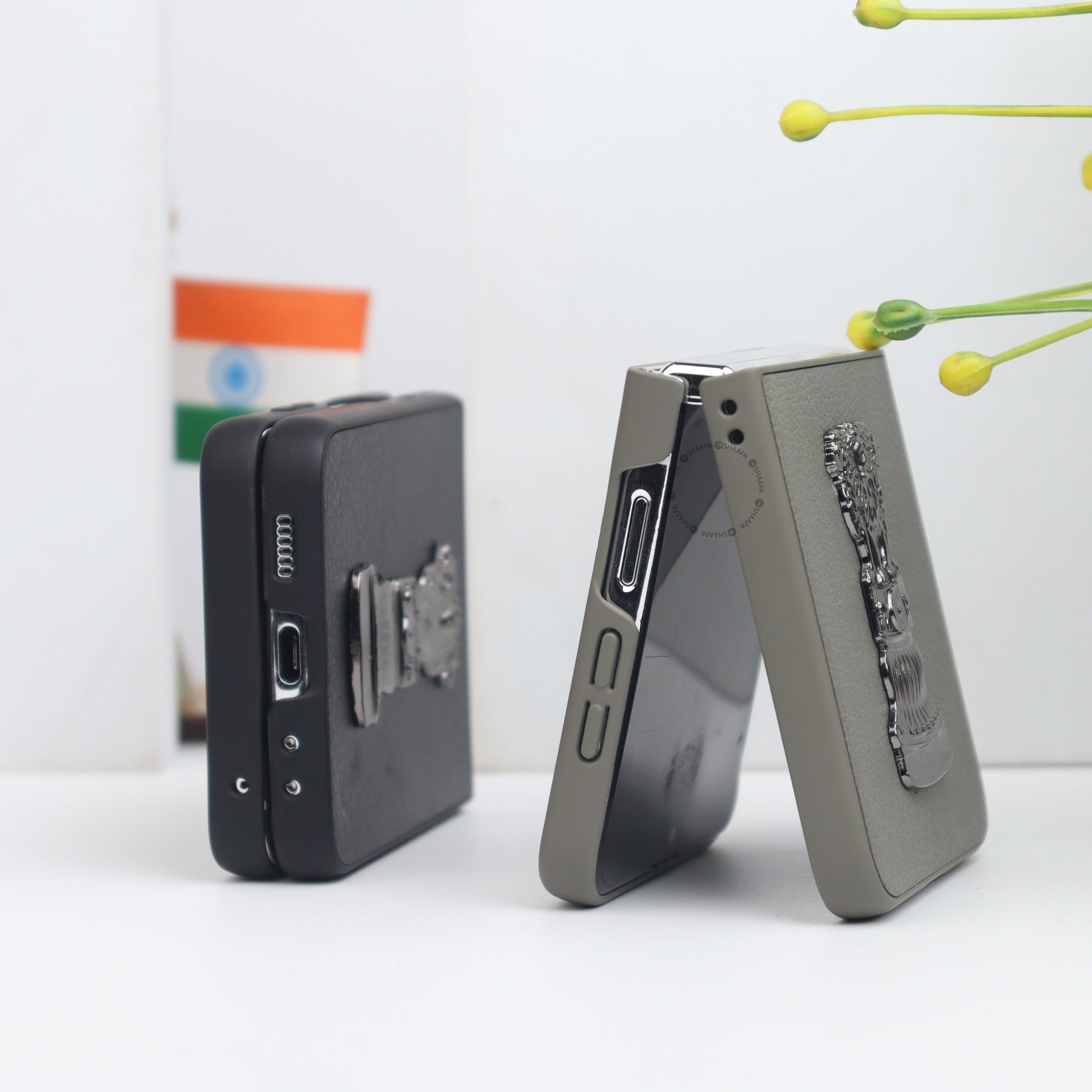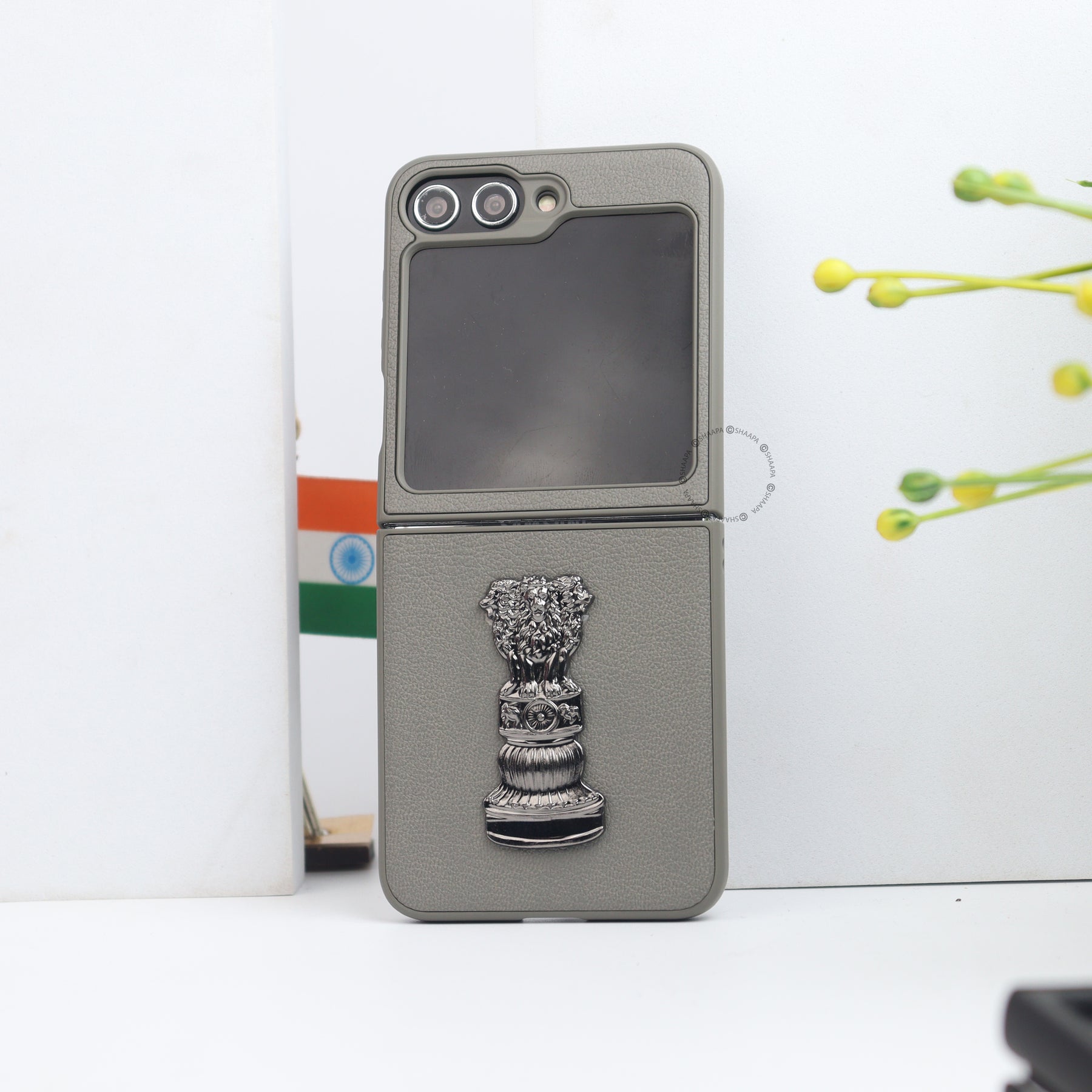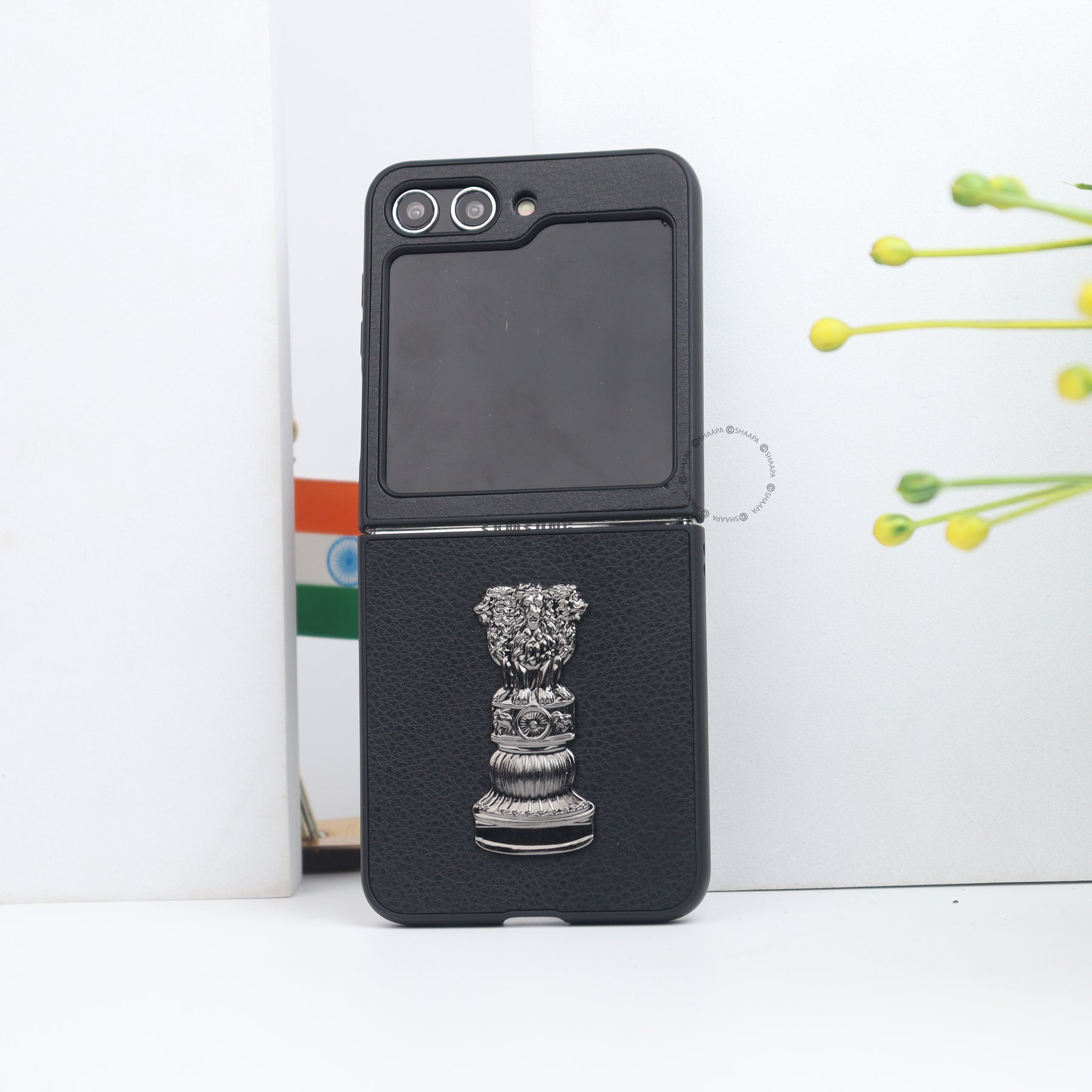 Elevate your style and patriotism with our Ashok Stambh Leather Case. Crafted from premium leather, this case features a detailed 3D metallic Ashoka Pillar emblem, symbolizing strength and heritage. The sleek, form-fitting design offers complete protection without compromising the foldability of your device. With precise cutouts for cameras and ports, and a secure grip, it’s both elegant and practical—a perfect blend of tradition and modernity for your smartphone.