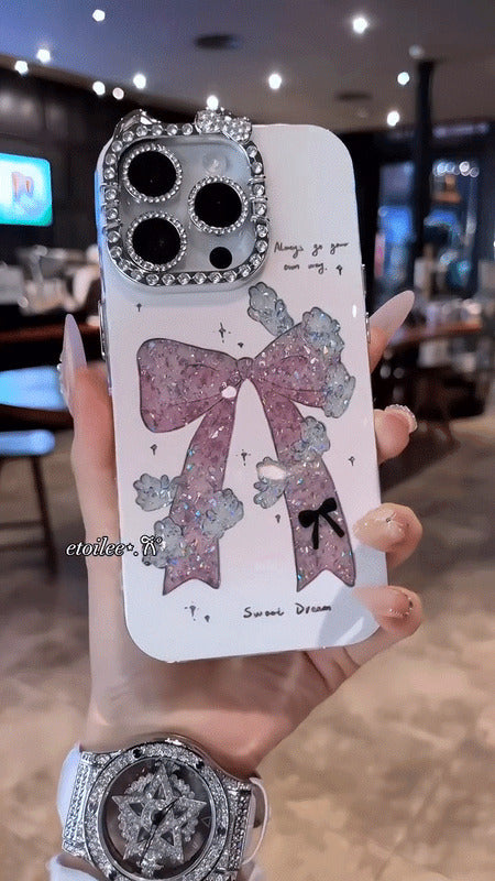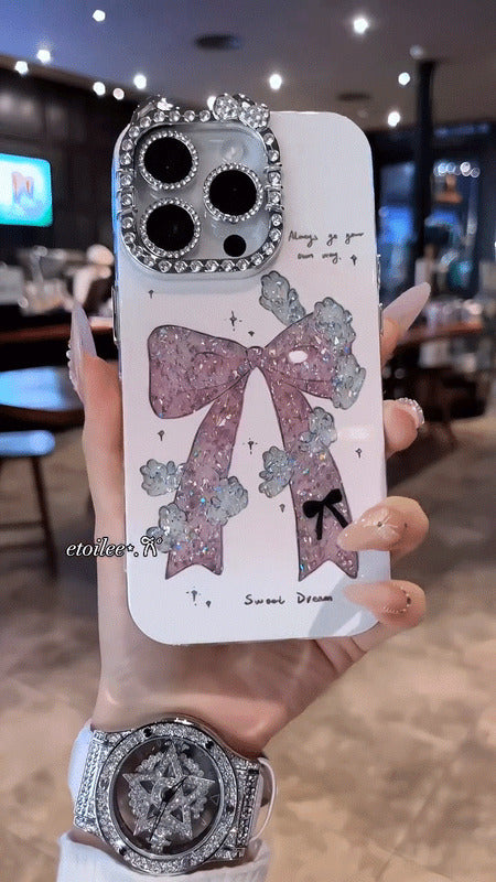 ✨ Add a touch of sparkle to your everyday look with the GlimmerBow Case! Featuring a glittery pink bow, crystal embellishments, and elegant 3D details – this case is a dream come true for every fashion lover. 🌸💖
