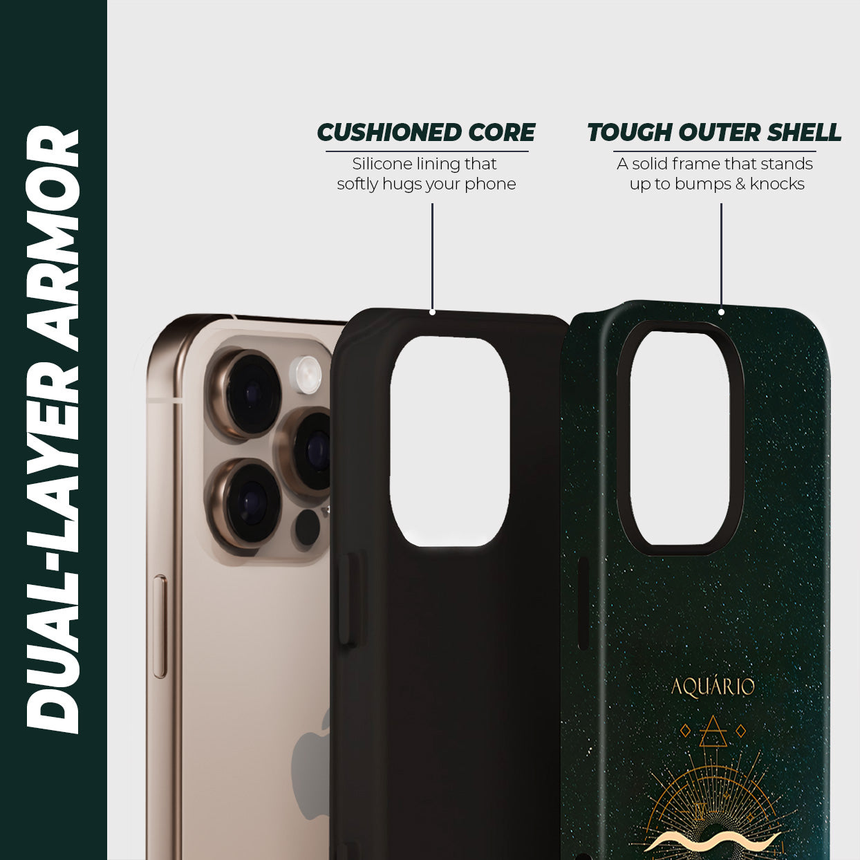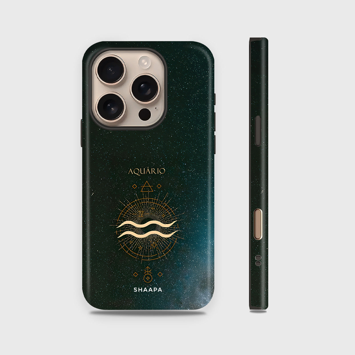 Bold and visionary, the Aquarius - The Free Soul case highlights its iconic water bearer symbol in radiant gold. Accented by geometric details and set against a cosmic sky, this design represents innovation, independence, and forward-thinking spirit, perfectly suited for the trailblazer.