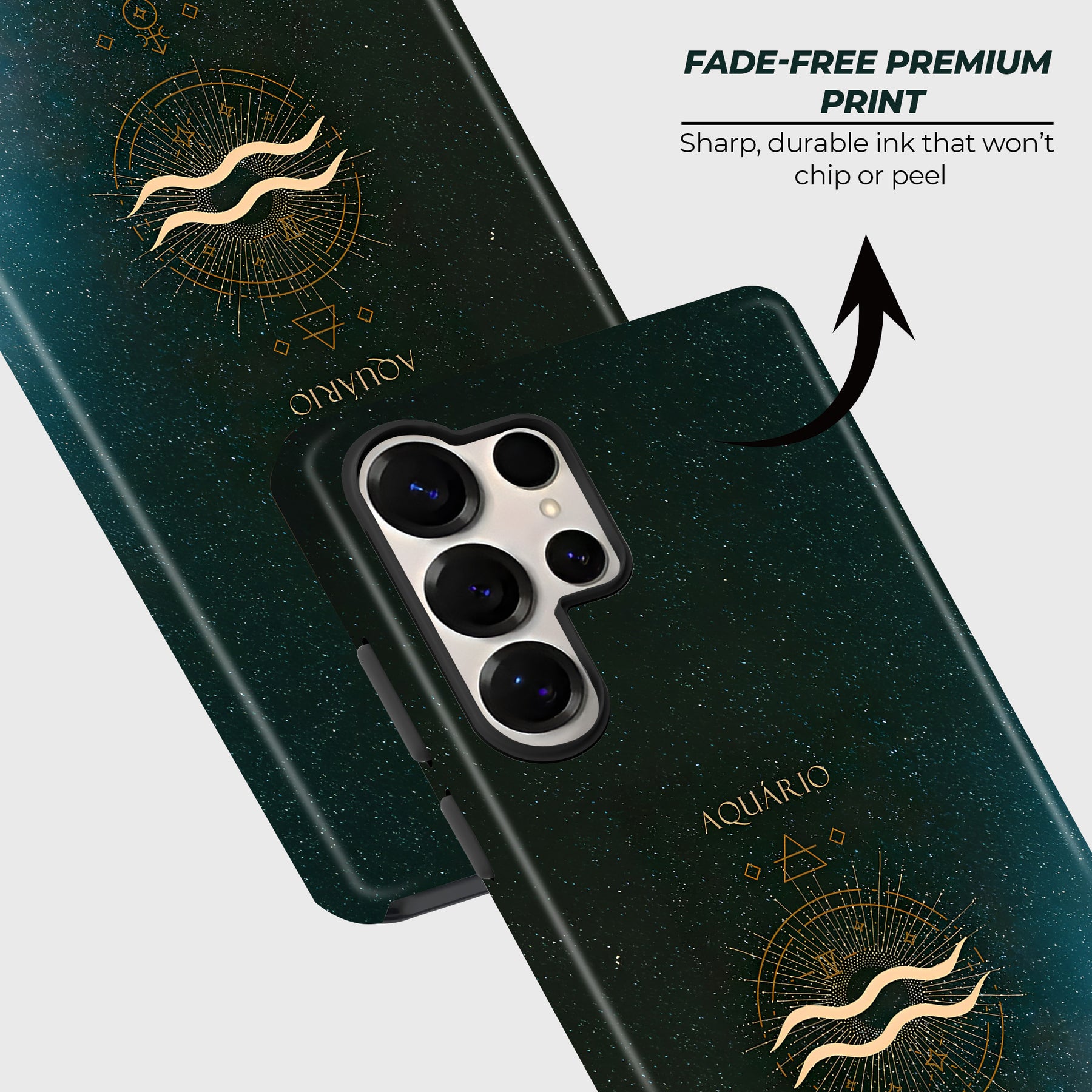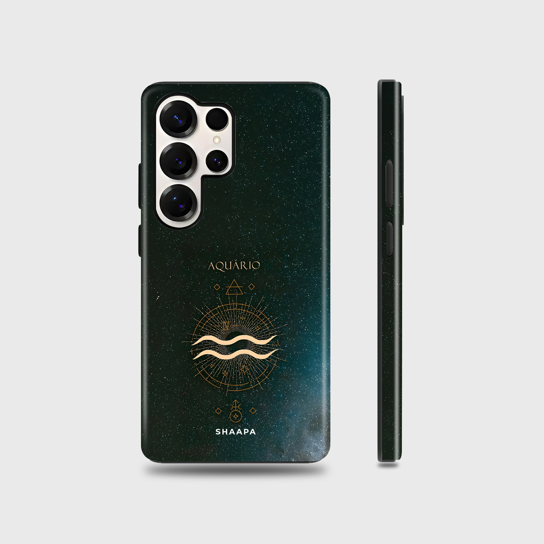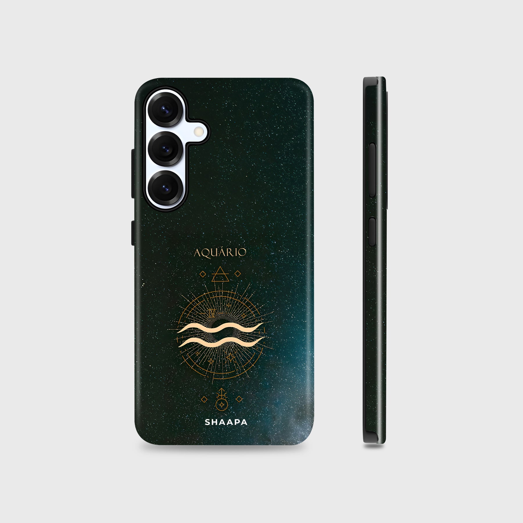 Bold and visionary, the Aquarius - The Free Soul case highlights its iconic water bearer symbol in radiant gold. Accented by geometric details and set against a cosmic sky, this design represents innovation, independence, and forward-thinking spirit, perfectly suited for the trailblazer.