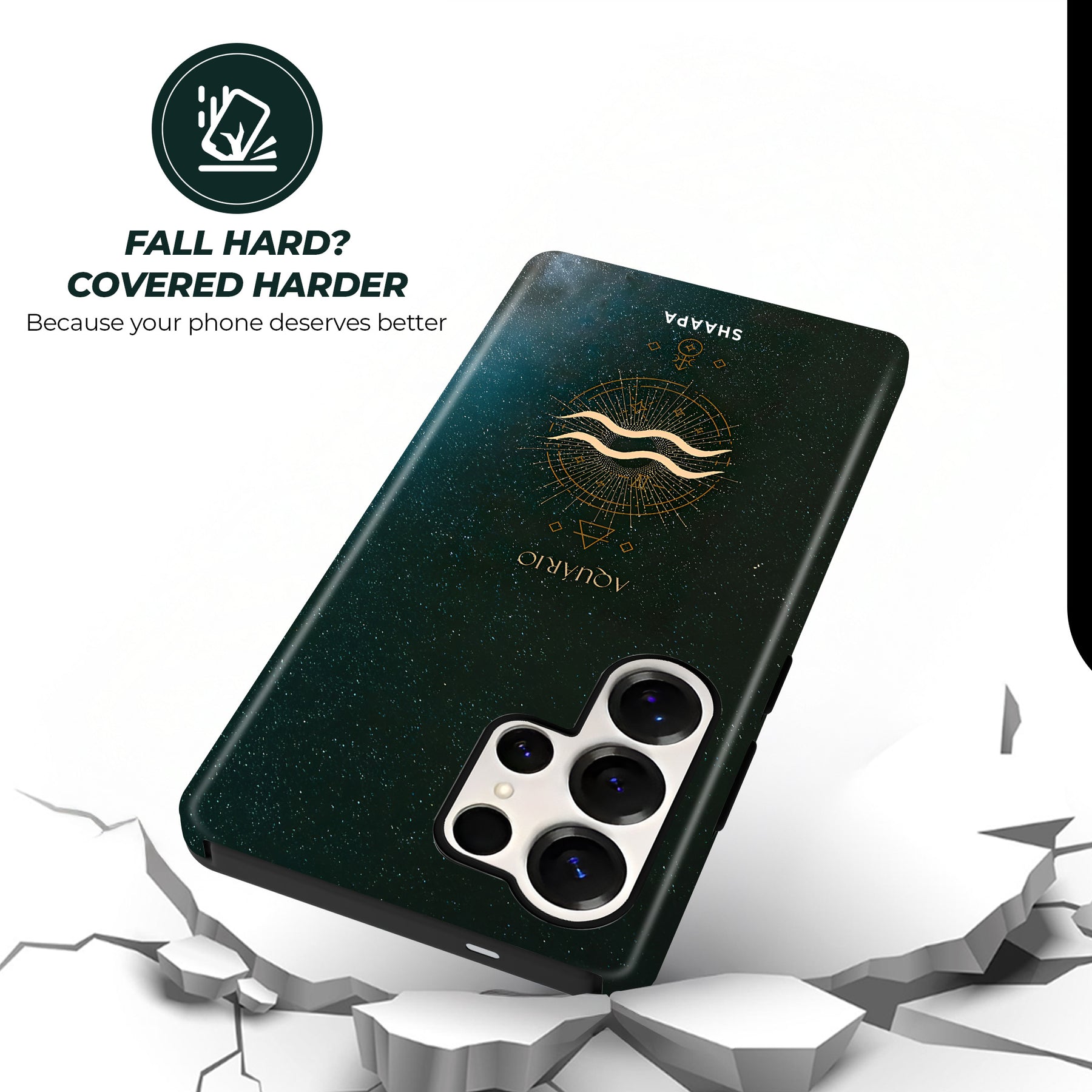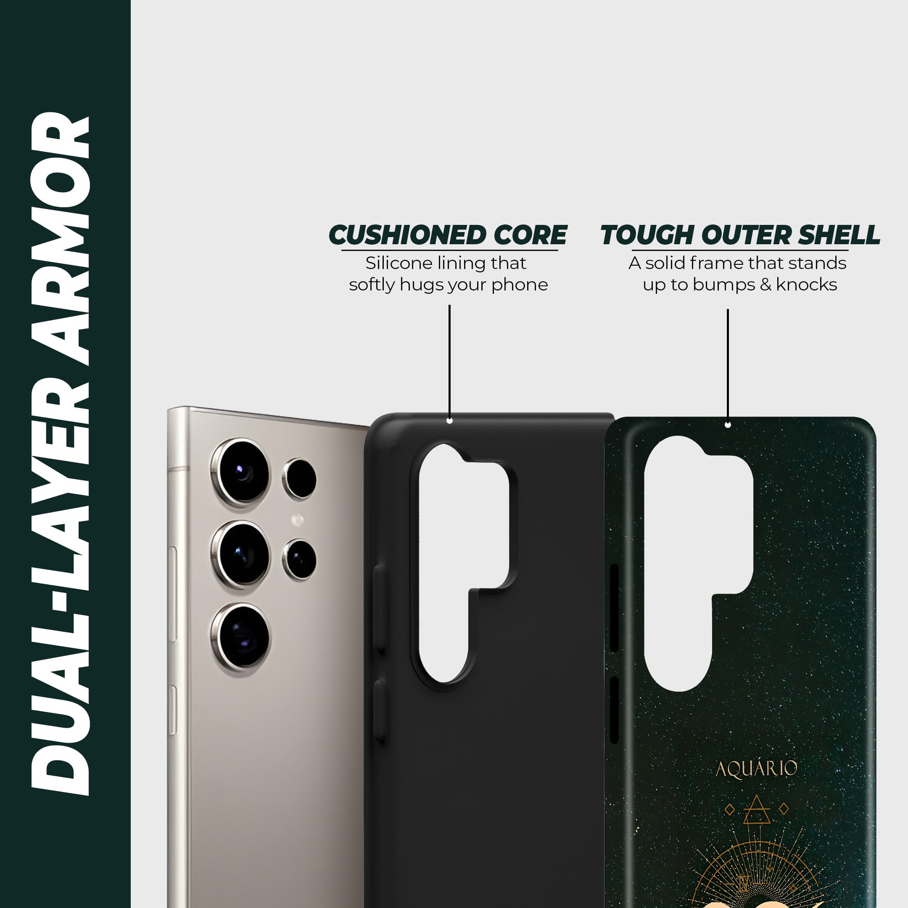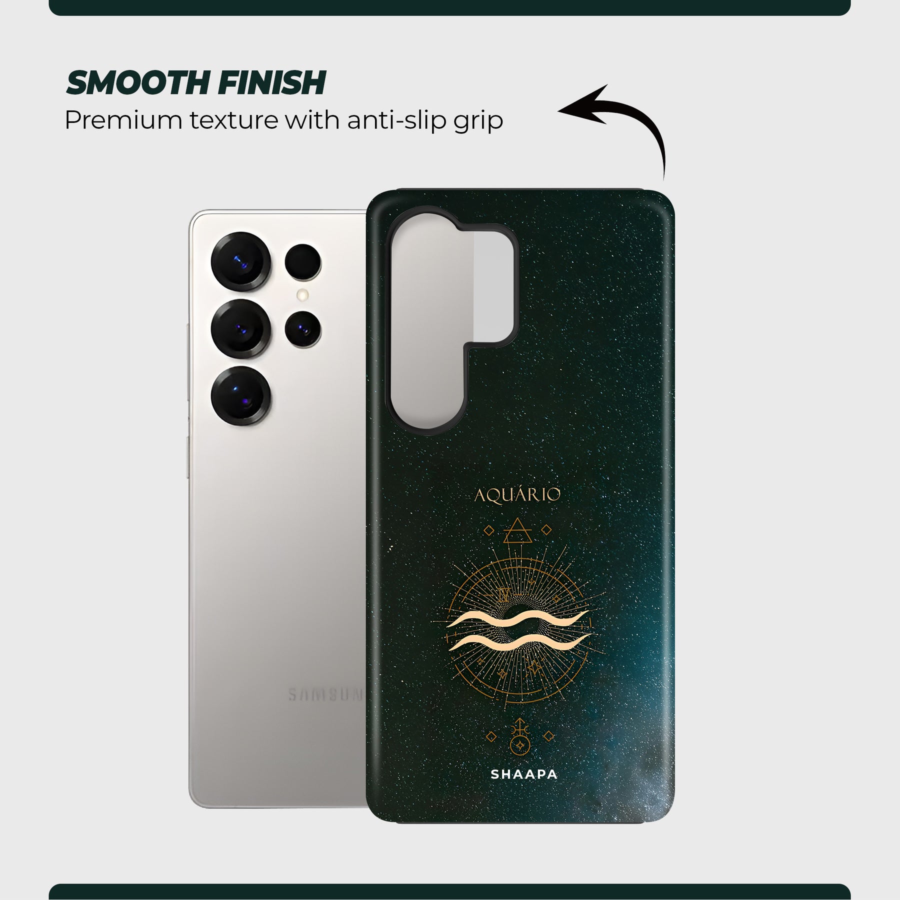 Bold and visionary, the Aquarius - The Free Soul case highlights its iconic water bearer symbol in radiant gold. Accented by geometric details and set against a cosmic sky, this design represents innovation, independence, and forward-thinking spirit, perfectly suited for the trailblazer.