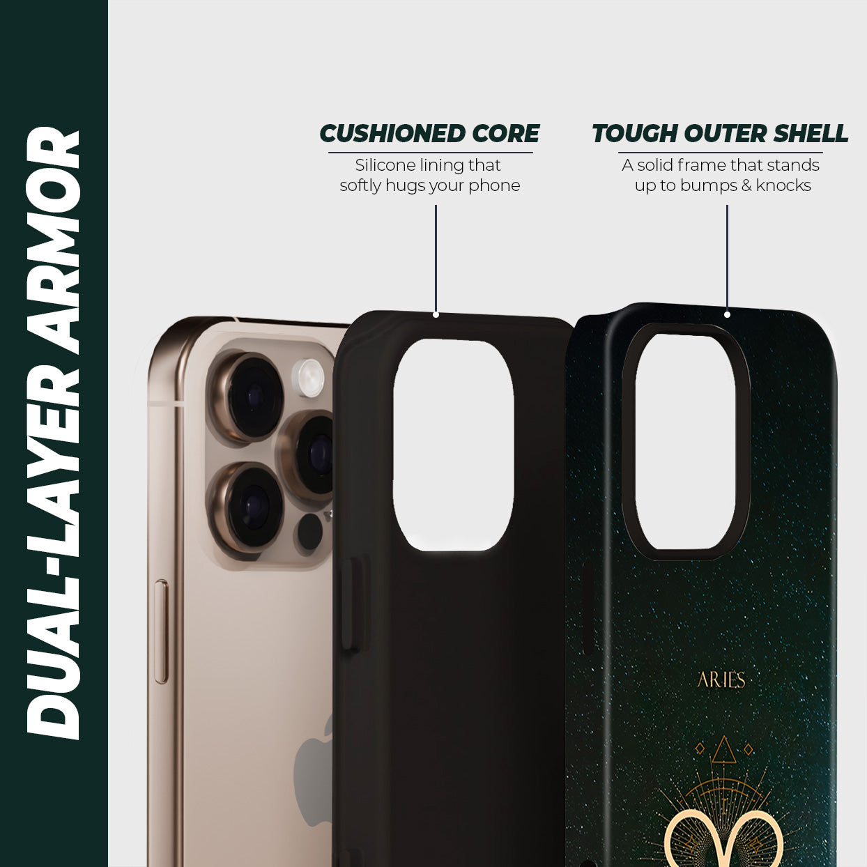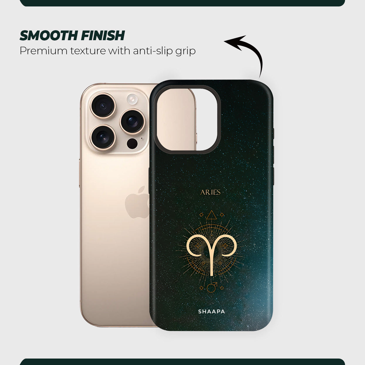 Dynamic and fearless, the Aries - The Bright Starter case shines with its golden ram symbol at the center of an energized starry design. Radiating strength and passion, this case embodies courage and determination, a must-have for those born to lead with bold action.