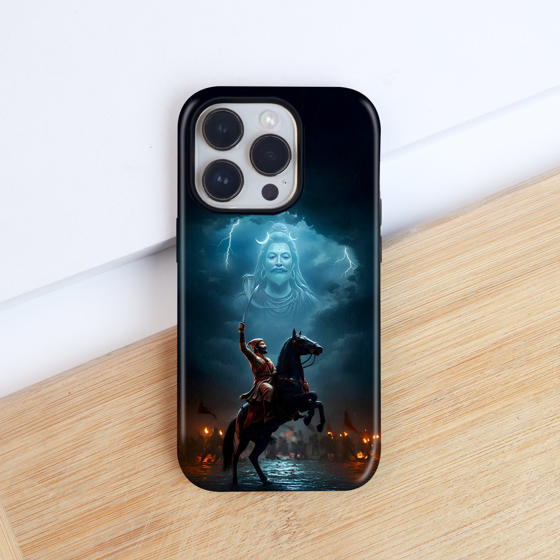 Showcase power and devotion with this Divine Warrior featuring a fearless warrior on horseback, sword raised high under a stormy sky, with a divine celestial figure watching over. The dramatic lightning and fiery ambiance symbolize strength, faith, and determination.