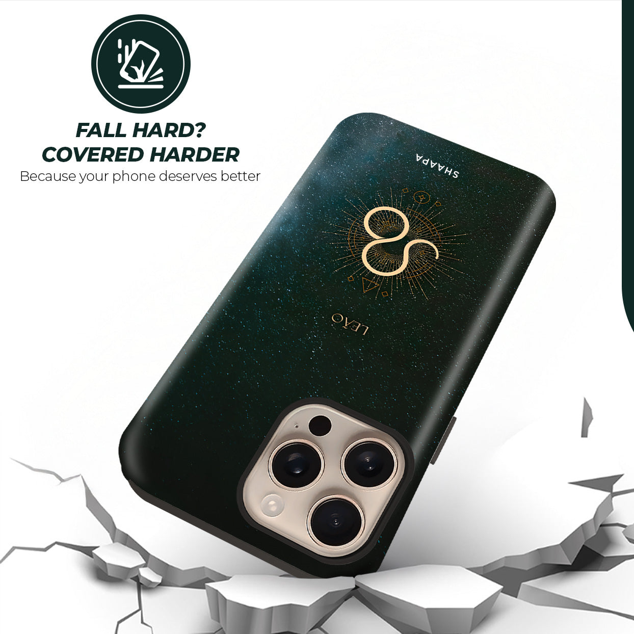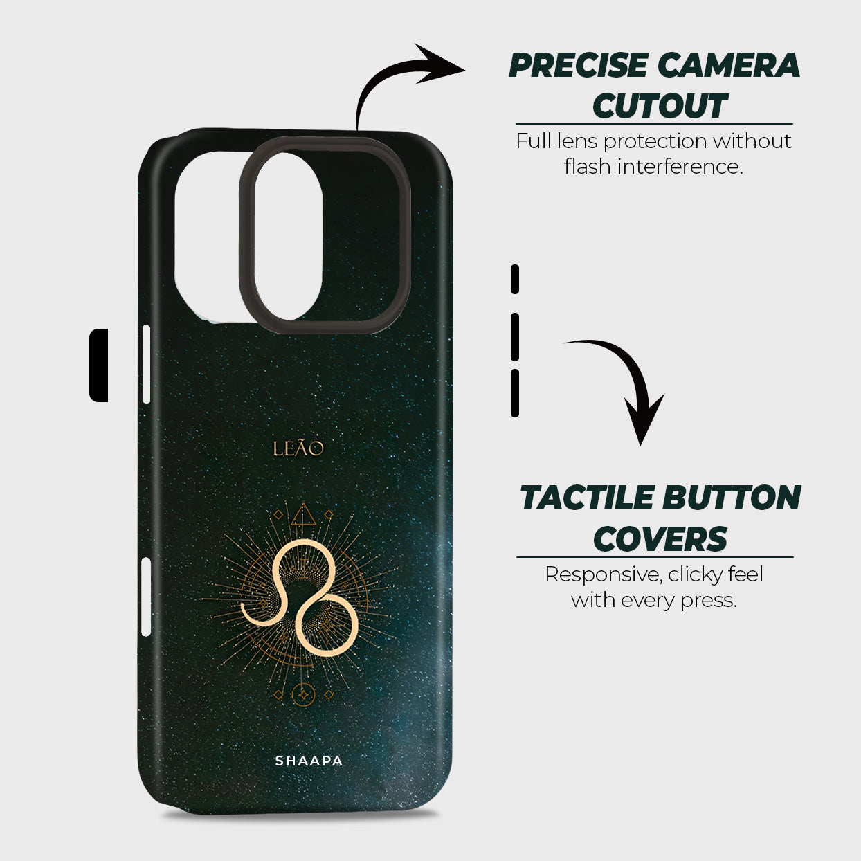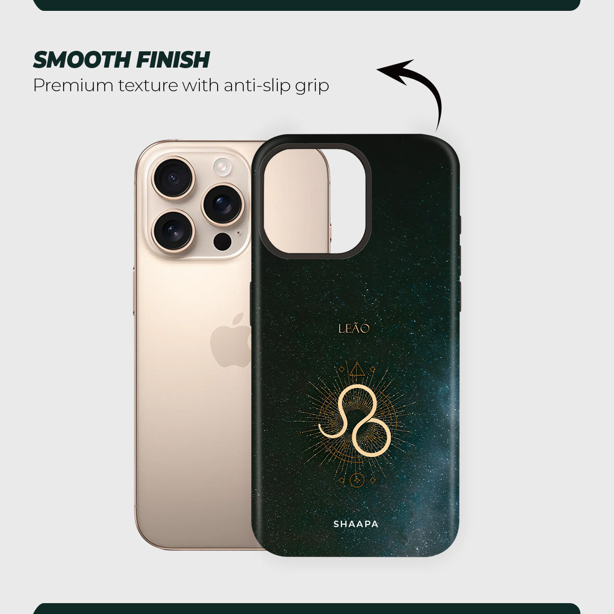 Majestic and radiant, the Leo - The Leader displays the golden lion emblem surrounded by beams of light. The starry sky backdrop reflects Leo’s fiery confidence, leadership, and warmth, making it bold yet elegant.