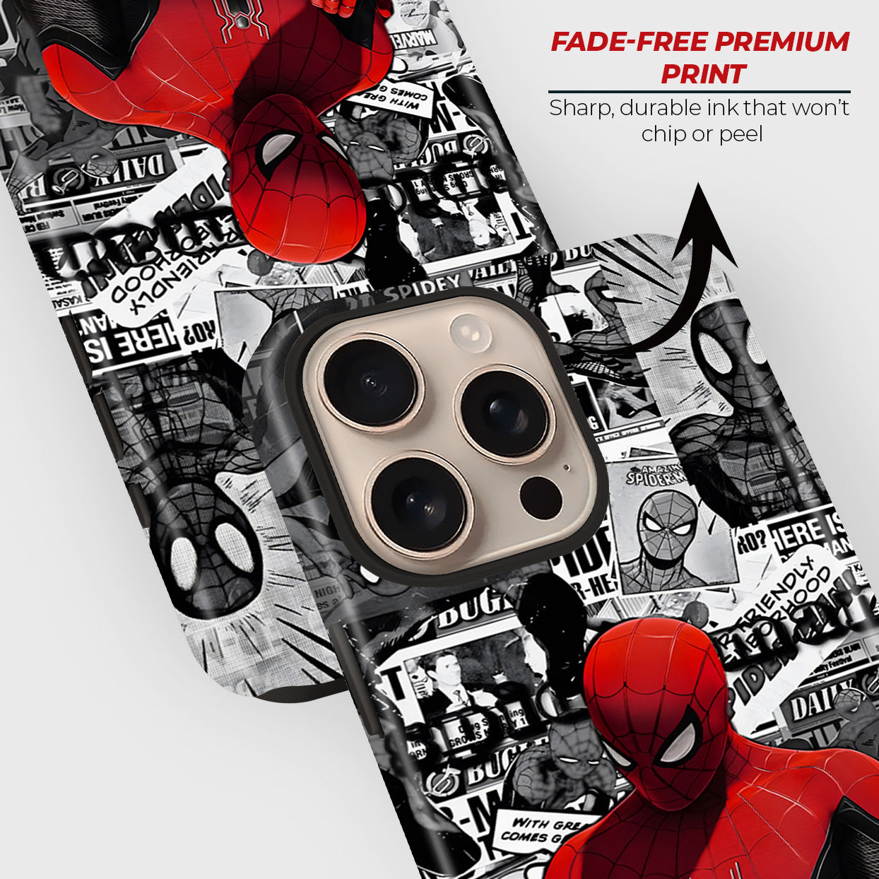 A vibrant comic-inspired Spider-Man design that merges classic and modern elements. With detailed panels and a striking red-suited Spidey at the center, this case is pure nostalgia for Marvel lovers.