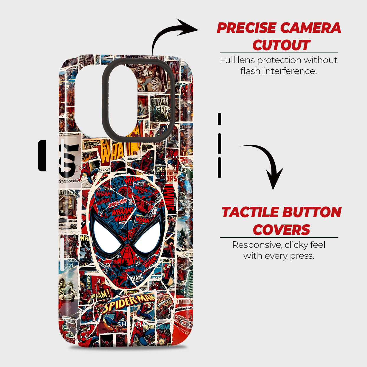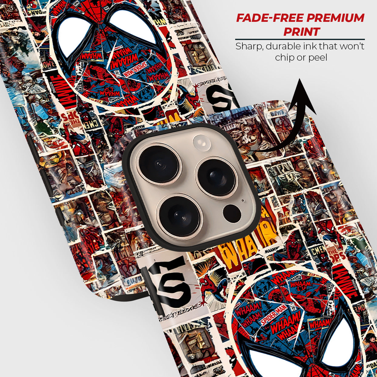 A unique design with Spider-Man’s mask created from an entire collage of comic panels. This case brings retro art and modern flair together for every Spidey fan.