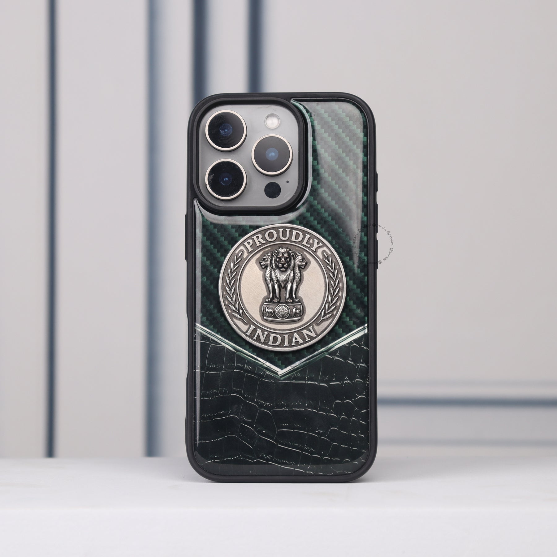 Carry a symbol of strength and integrity wherever you go with the Proudly indian Elite Leather Case. Featuring India’s revered national emblem and the powerful words Satyamev Jayate, this case is crafted for those who lead with conviction and honor. The smooth, leather-textured finish paired with metallic accents makes it a premium tribute to India’s timeless ideals.