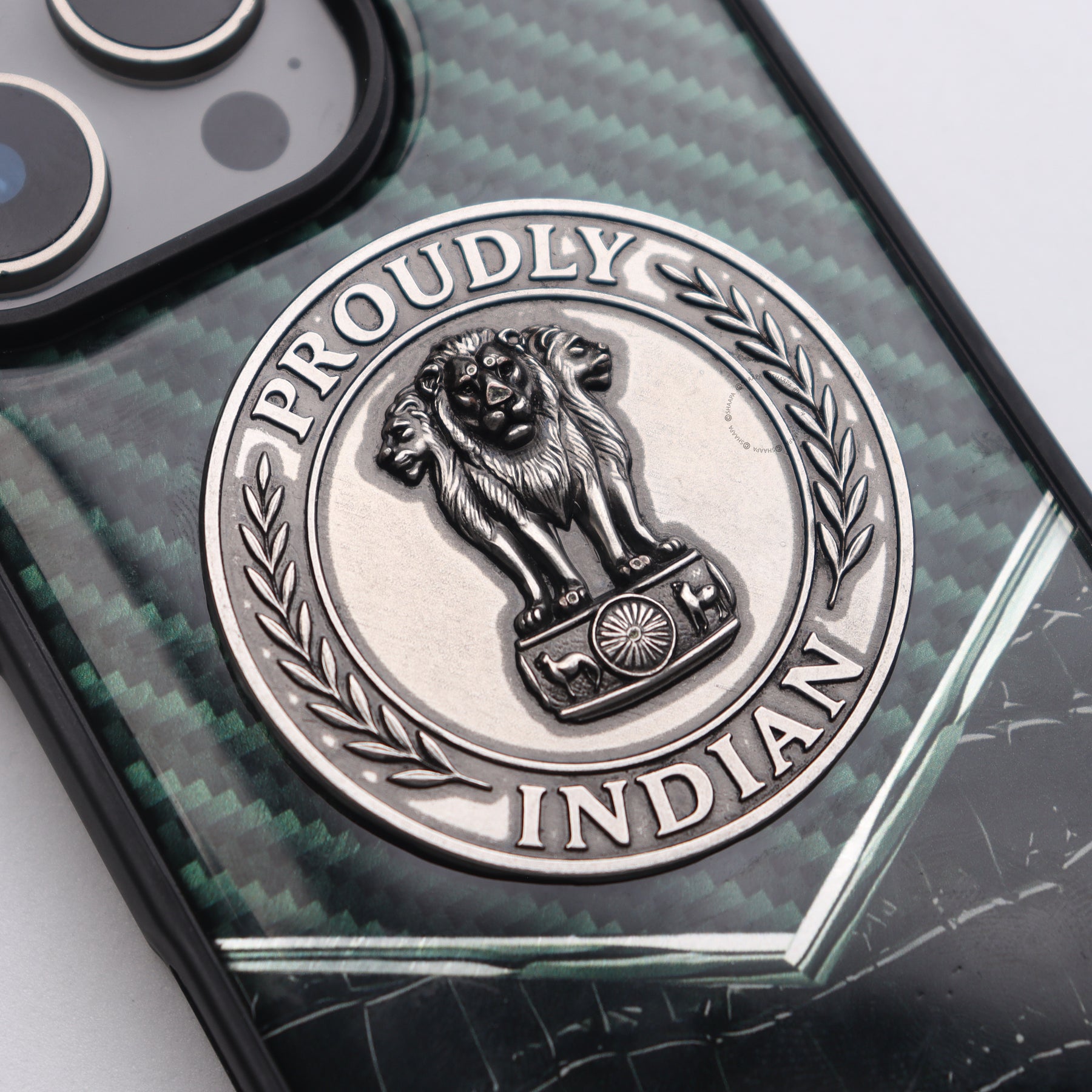 This case features an artistic representation of the National Emblem and Proudly indian It is not an official government product. The emblem is protected under The State Emblem of India (Prohibition of Improper Use) Act, 2005. This product is not affiliated with or endorsed by any government authority.
