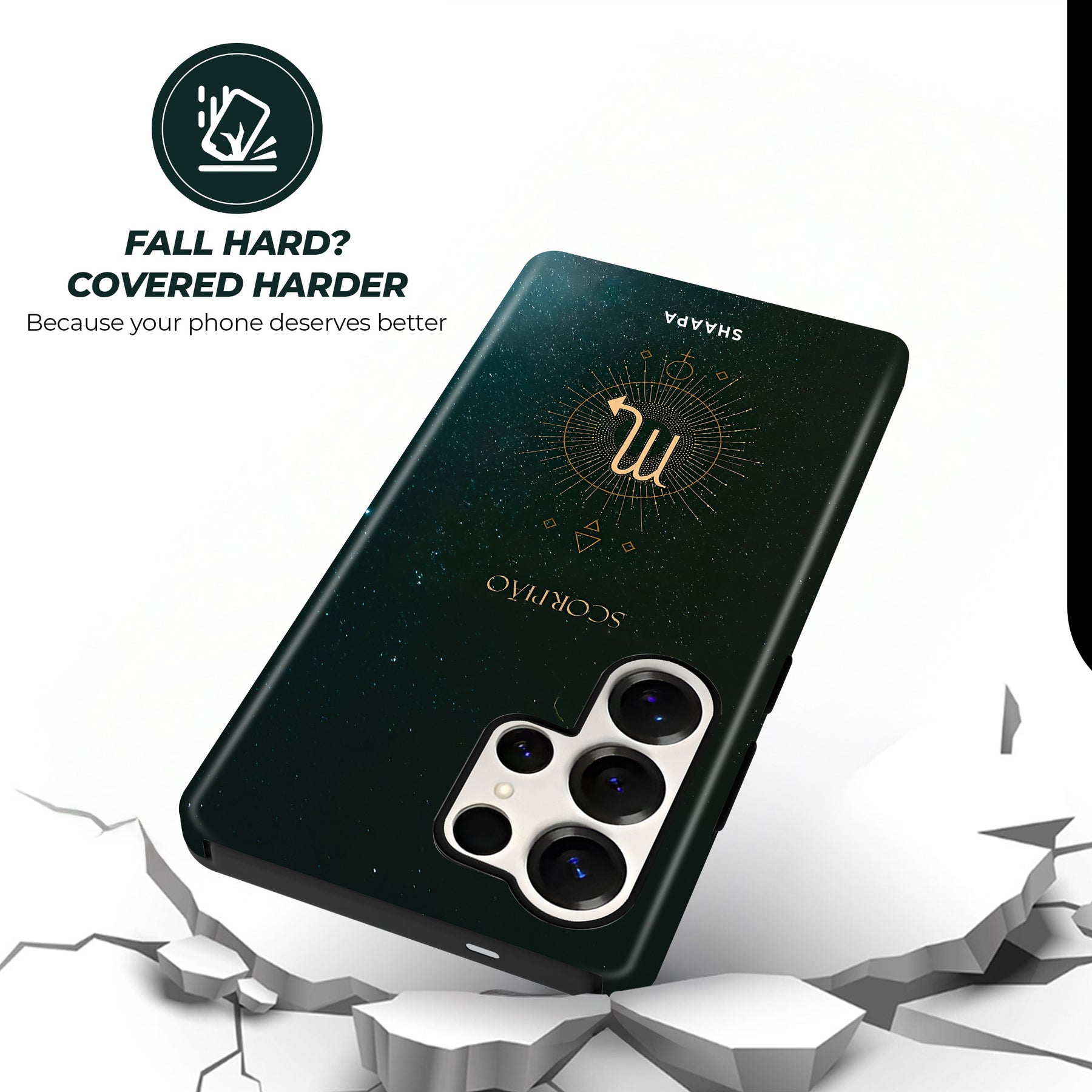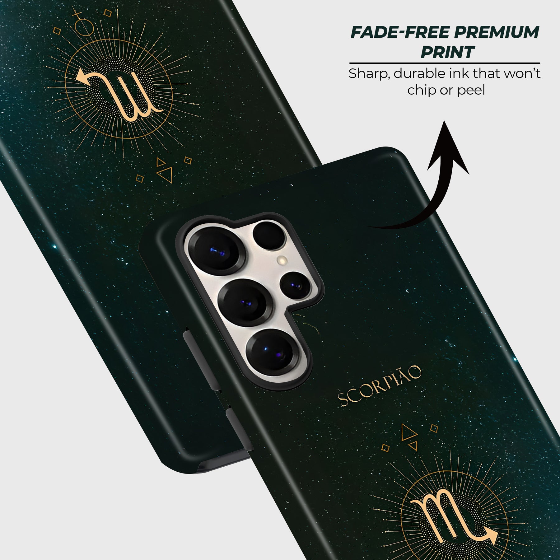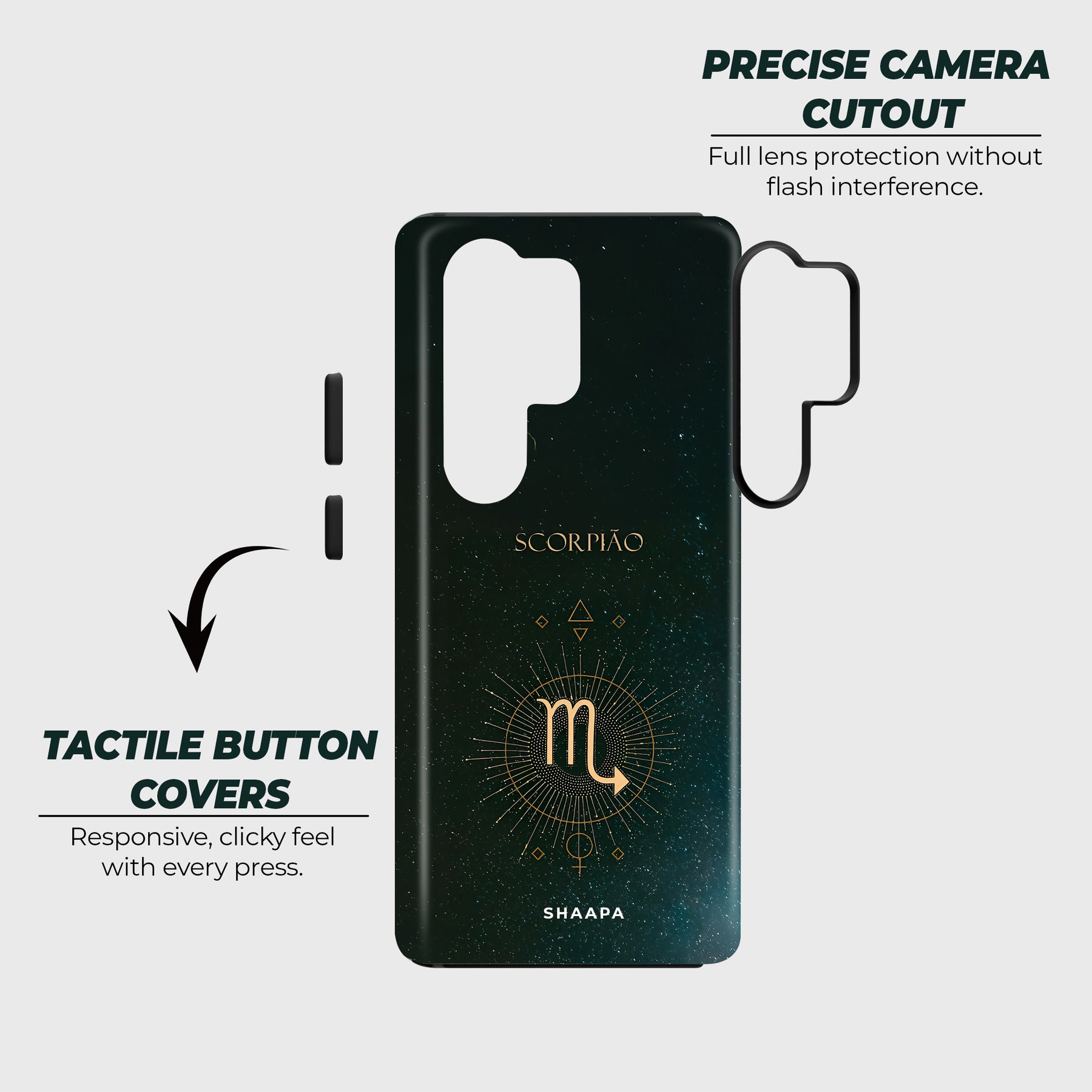 Designed with intensity and depth, the Scorpio case features the iconic scorpion symbol in radiant gold. The starry background enhances its aura of mystery and power, embodying passion, transformation, and resilience.