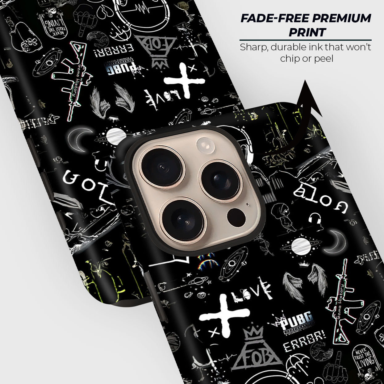 Snag is more than a phone case — it's a canvas of rebellion. Packed with iconic sketches, gaming graphics, error codes, guns, controllers, skulls, headphones, wings, and neon vibes — this chaotic collage is perfect for the gamer soul, the night owl, and the rule-breaker.
