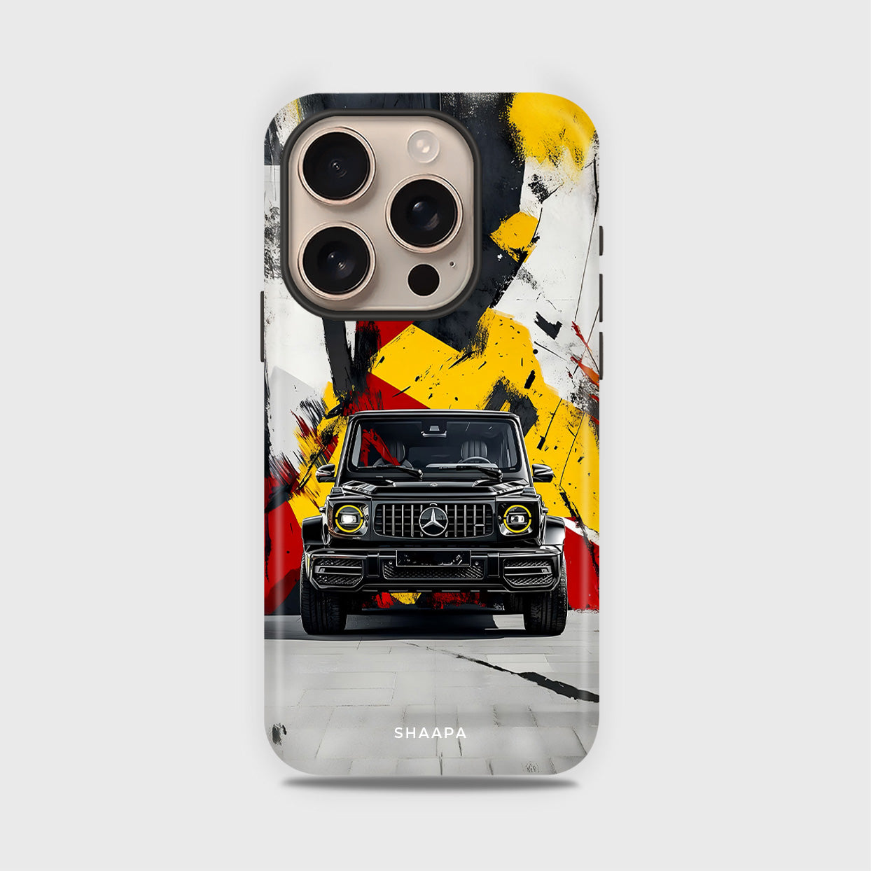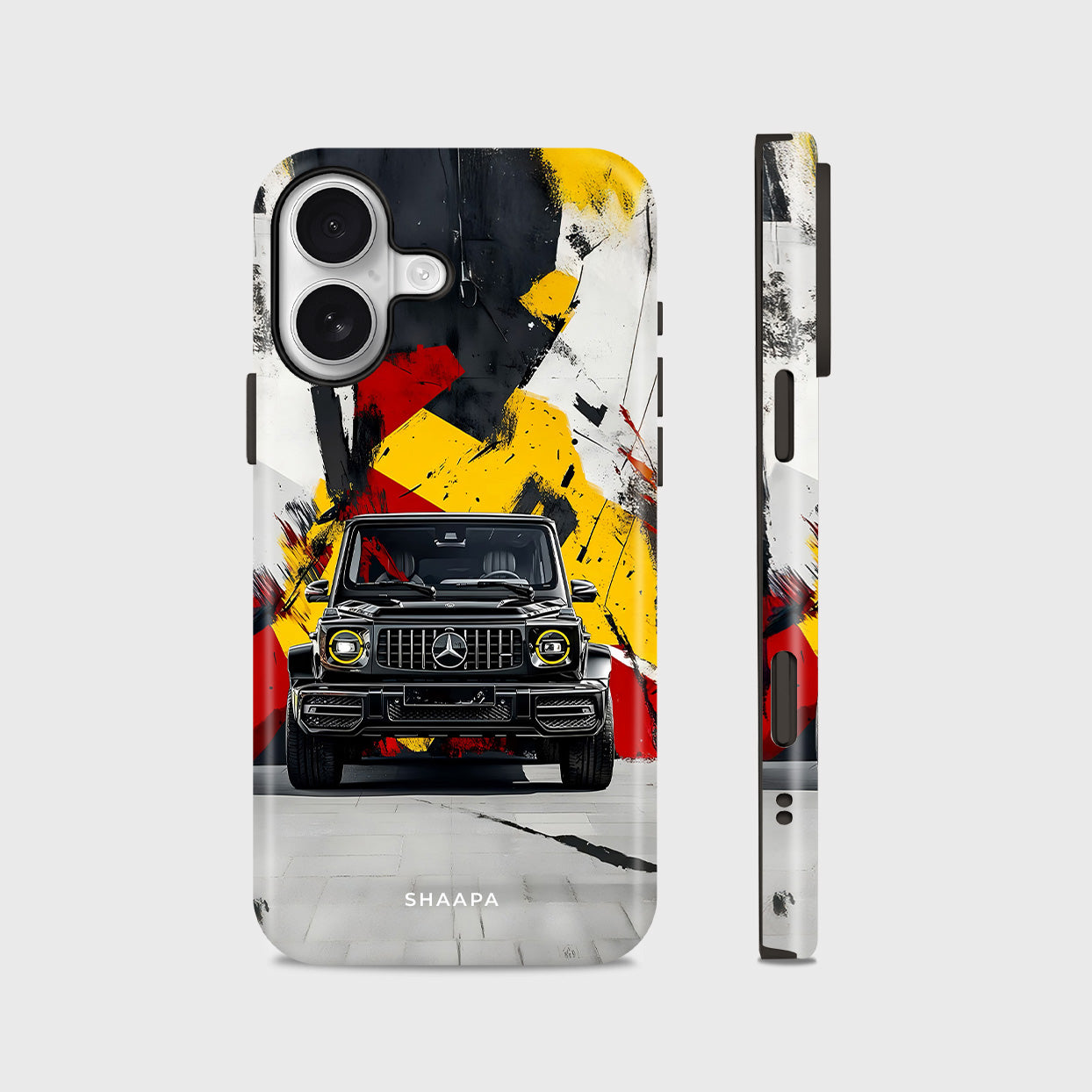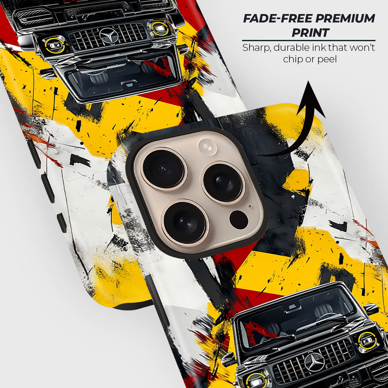 Bring unmatched luxury and boldness to your phone with this Wagon Case. Featuring a front-view of the iconic SUV set against a striking abstract backdrop of red, yellow, black, and white, this case symbolizes dominance, strength, and premium style. The artwork blends urban street art with automotive elegance, making it the perfect accessory for car enthusiasts who live life in the fast lane. A true statement of power, class, and fearless attitude—right in your hand.