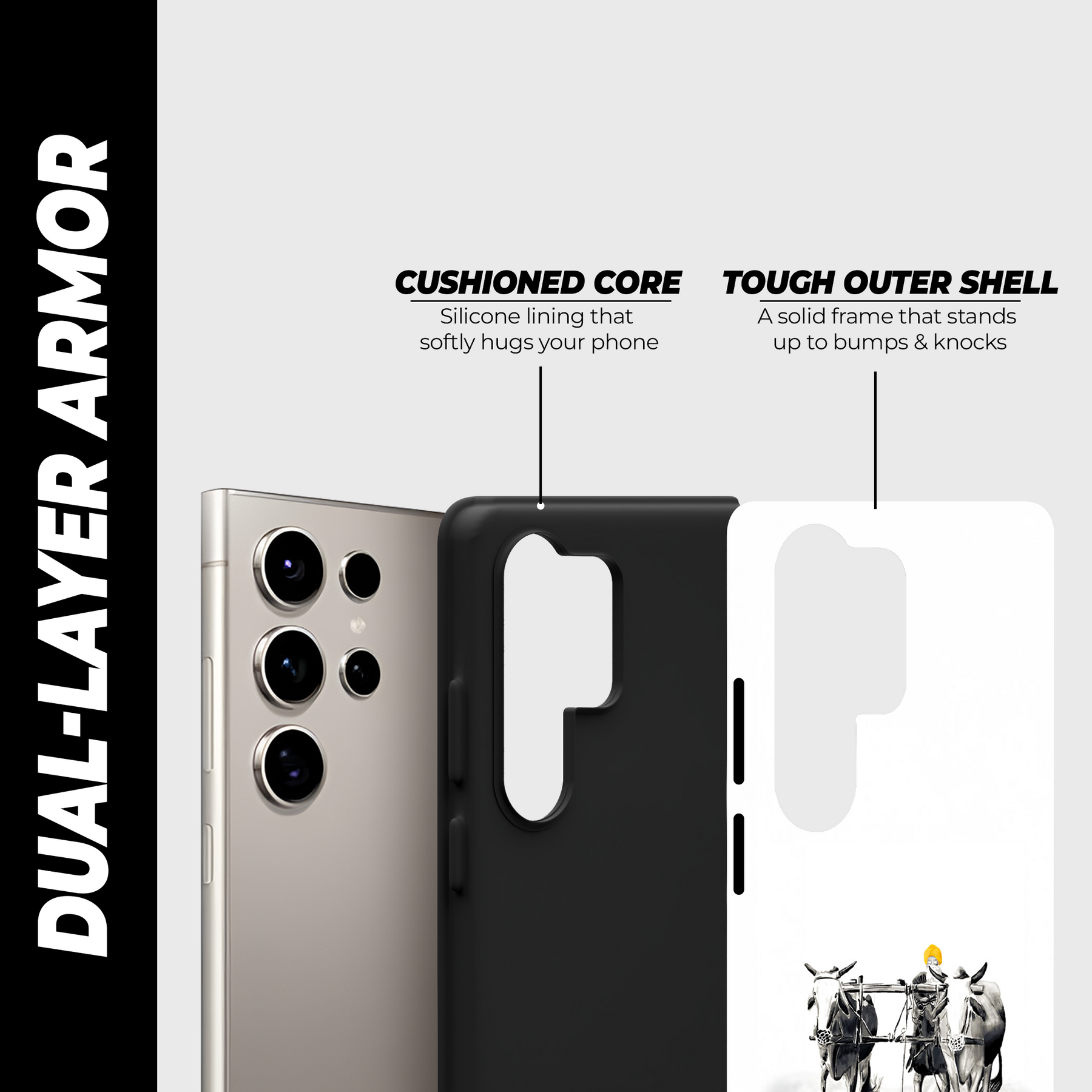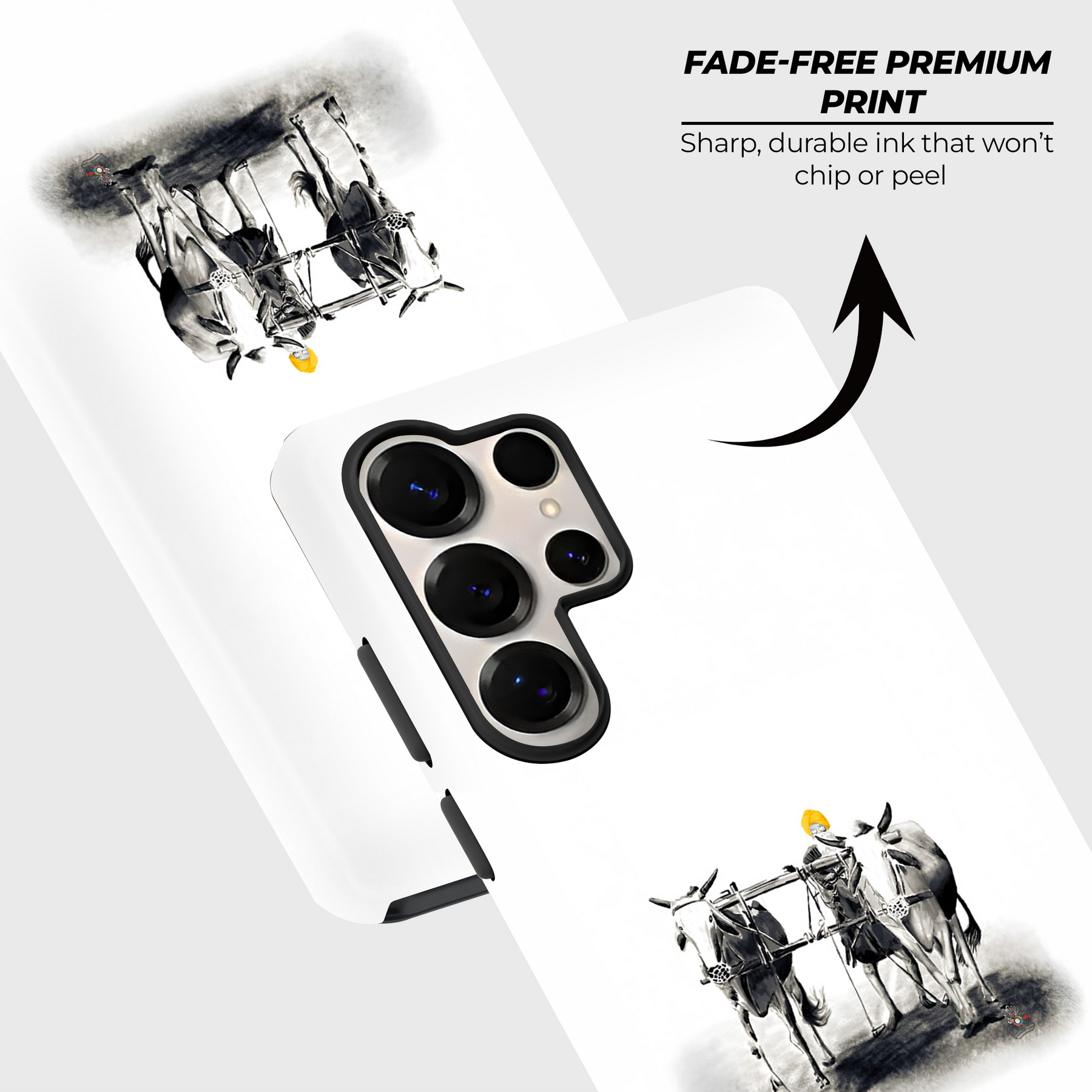 Bring a touch of tradition to your modern lifestyle with this beautifully crafted Sharecrop phone case featuring an artistic sketch of a farmer with his oxen. The minimal white background highlights the soulful rural artwork, symbolizing hard work, simplicity, and connection to the roots.