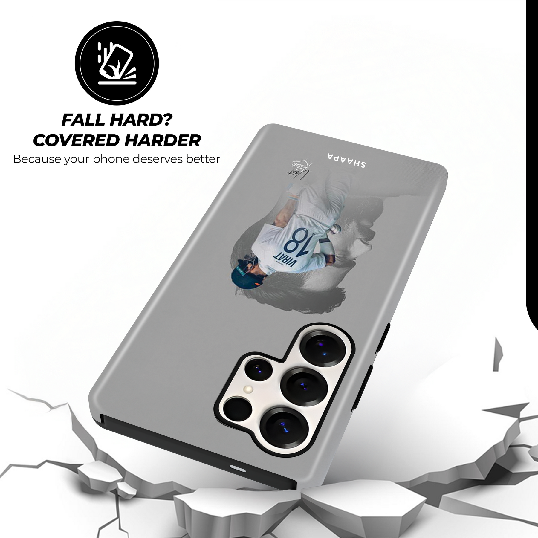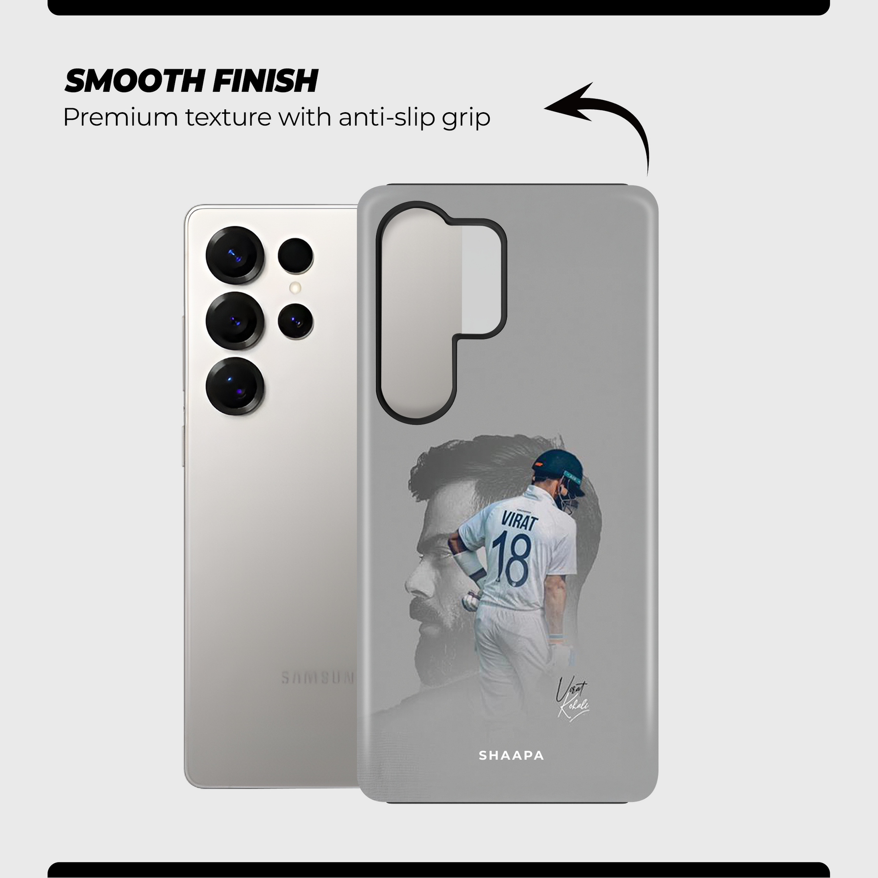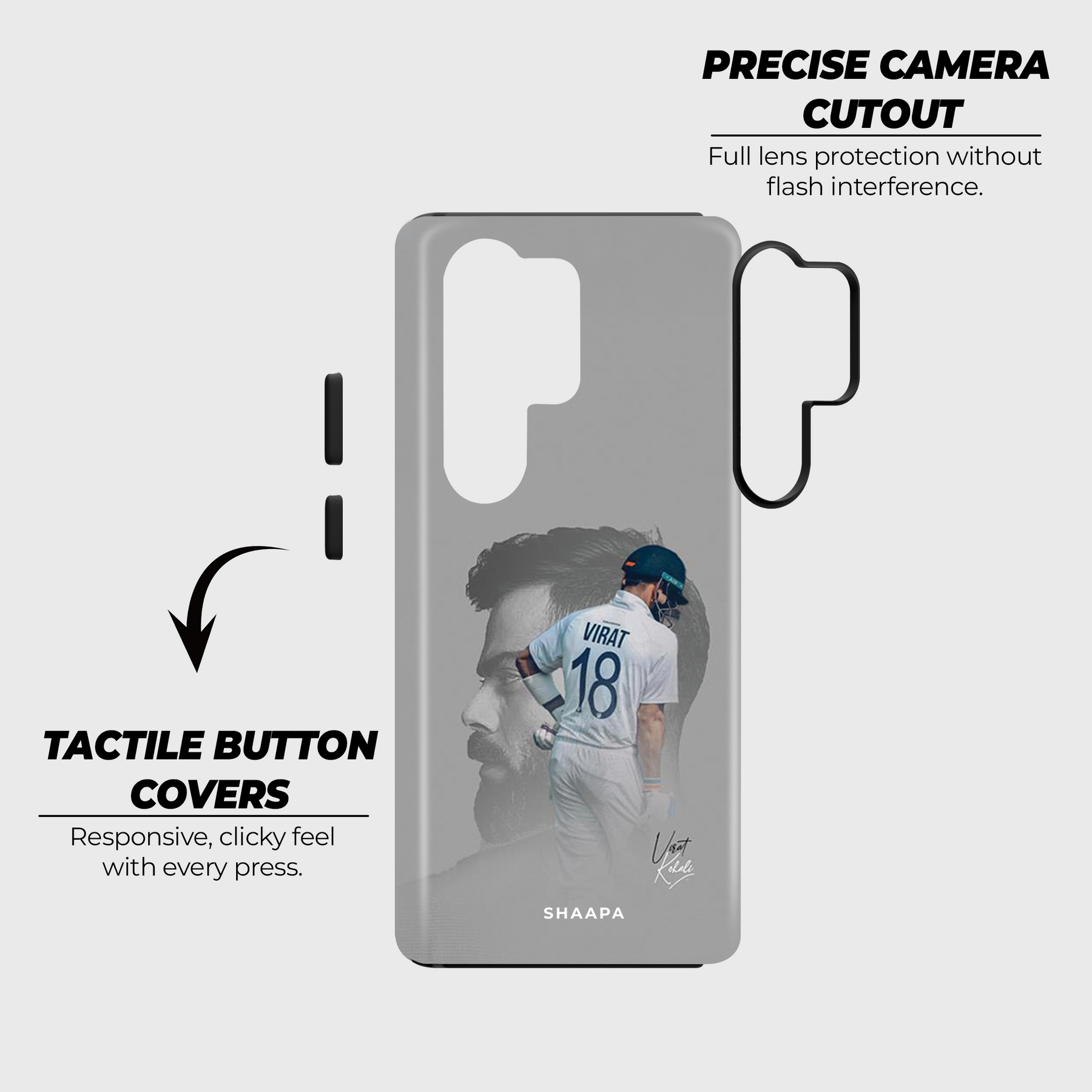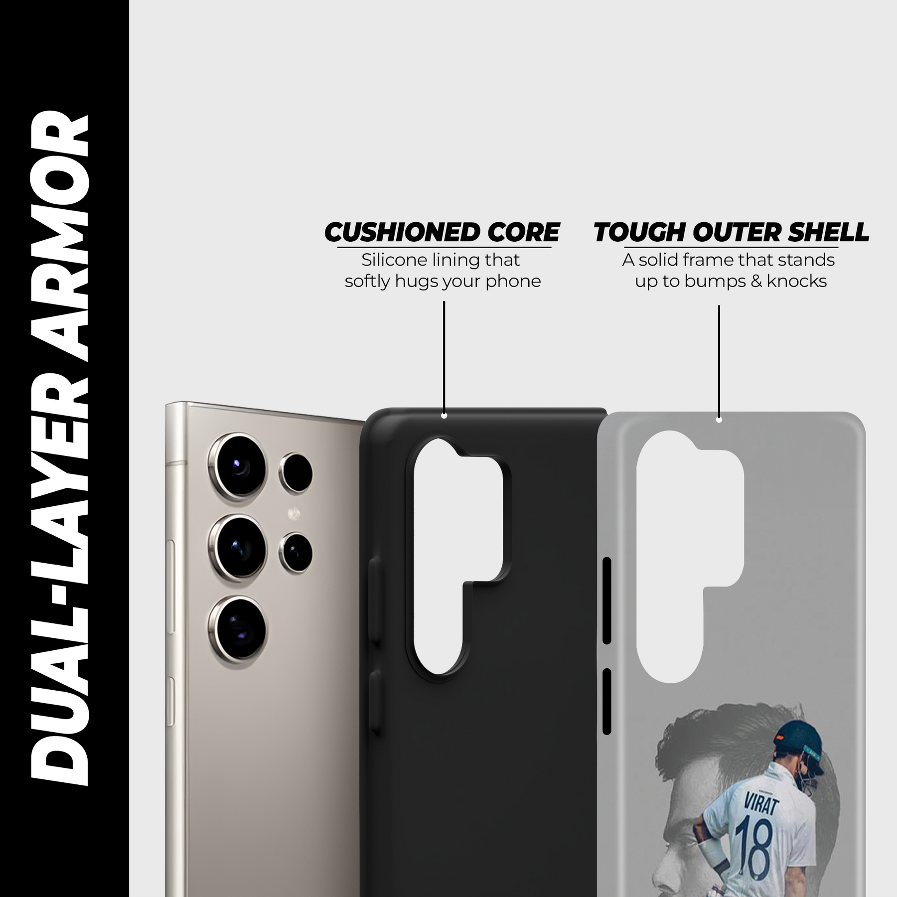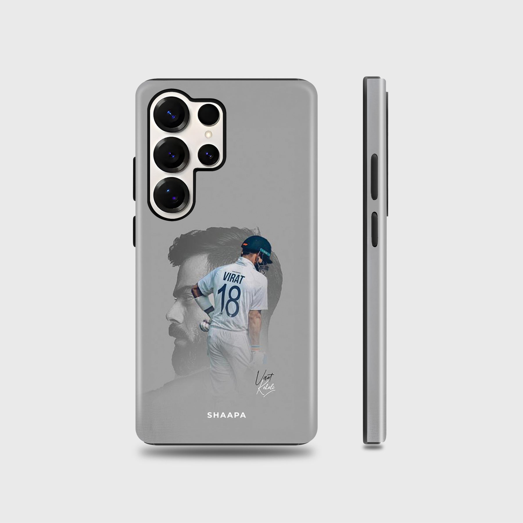 Celebrate the passion, power, and spirit of cricket with this Virat Phone Case. Featuring a stunning double-exposure artwork of a cricketer in action, it beautifully captures determination and confidence on the field. The sleek grey background adds a premium and sporty vibe, making it perfect for true cricket fans.